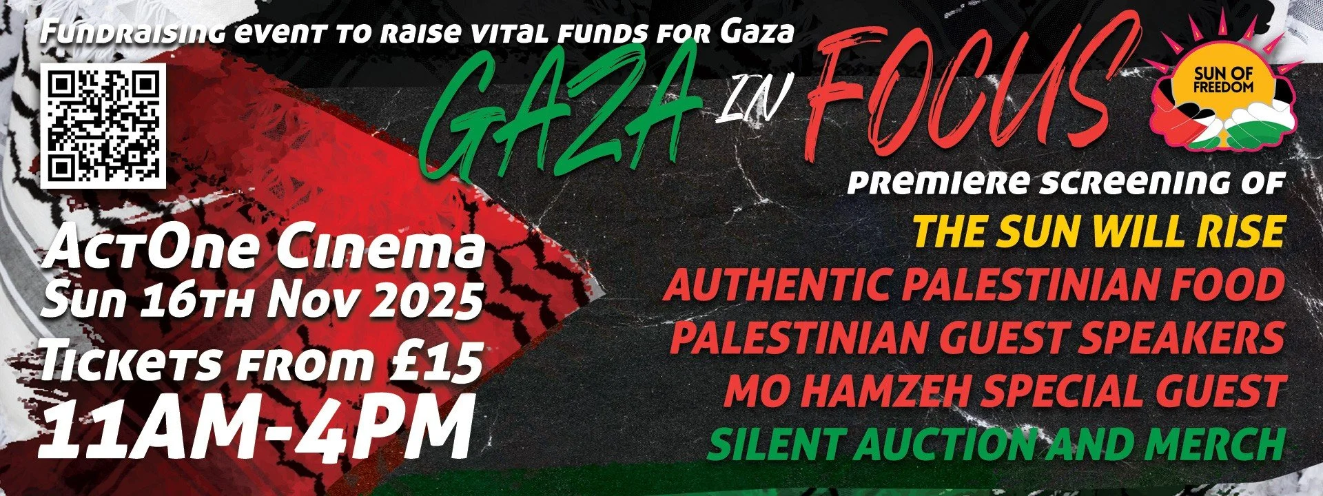 This event is dedicated to raising vital funds for Sun of Freedom’s emergency aid work in Gaza, while celebrating the richness of Palestinian heritage and resilience.